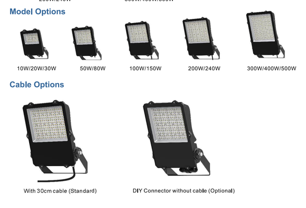 Dankzij de IP66-waterdichte behuizing is deze lamp bestand tegen de zwaarste weersomstandigheden, van -40°C tot +50°C tijdens gebruik. Met opties in zwart of grijs en verschillende driverconfiguraties (Sosen, Lifud of ROKEE) is de FL-06-G7 geschikt voor uiteenlopende toepassingen.